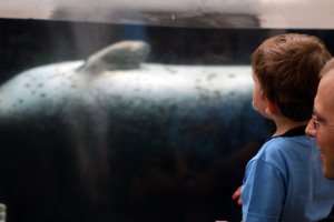 Outside the Aquarium, you can watch the harbor seals swim around and play. I loved watching this little boy and his dad get excited as the seals swam by. I wish I could have one as a pet!